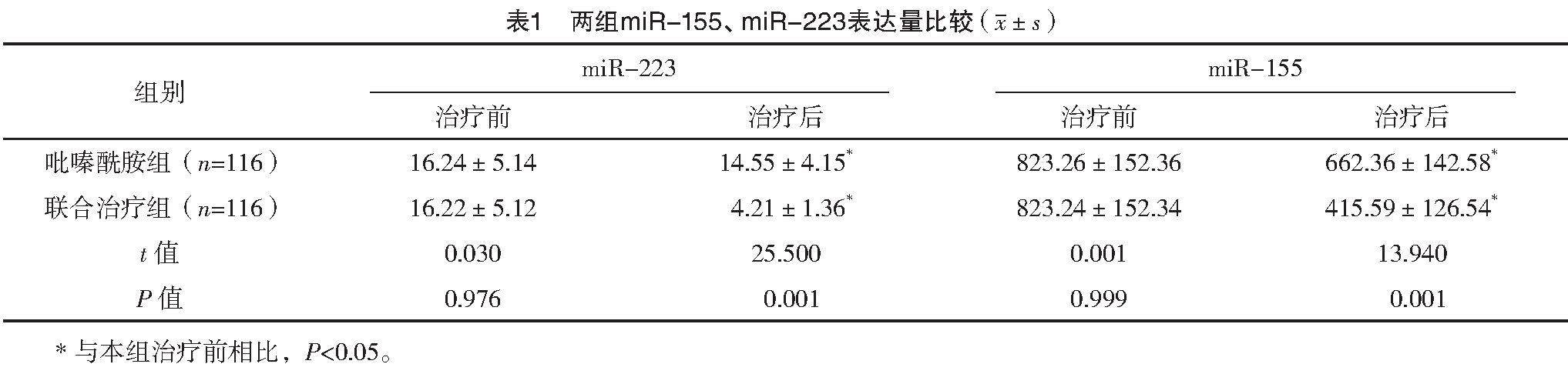【摘要】 目的:探究贝达喹啉联合吡嗪酰胺对耐多药肺结核患者的影响。方法:选取2020年4月—2021年4月赣州市第五人民医院收治的耐多药肺结核患者232例,按照随机数字表法将患者分为吡嗪酰胺组和联合治疗组,各116例。吡嗪酰胺组采用吡嗪酰胺治疗,联合治疗组采用贝达喹啉联合吡嗪酰胺治疗。采用RT-PCR法检测微小RNA-155(miR-155)、微小RNA-223(miR-223)表达量;采用酶联免疫吸附试验(ELISA)检测腺苷脱氨酶(ADA)、C反应蛋白(CRP)、白细胞介素-6(IL-6)、白细胞介素-2(IL-2)、碱性磷酸酶(ALP)、丙氨酸氨基转氨酶(ALT)、天门冬氨酸氨基转氨酶(AST)、总蛋白(TP);采用肺功能仪检测第1秒用力呼气容积(FEV1)、FEV1/用力肺活量(FVC)%、每分钟最大通气量(MVV)水平;观察两组治疗总有效率及不良反应总发生率。(剩余10474字)