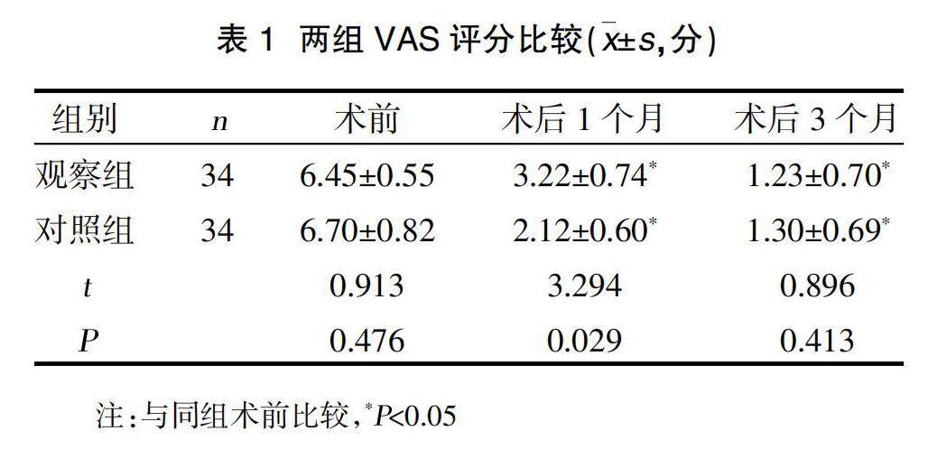 摘要:目的 研究不同剂量骨水泥灌注单侧经皮椎体成形术治疗骨质疏松性胸腰椎压缩性骨折的临床疗效。方法 选取2021年1月-2022年12月我院诊治的68例骨质疏松性胸腰椎压缩性骨折患者为研究对象,采用随机数字表法分为对照组和观察组,各34例。对照组骨水泥灌注量为多量(2.6~3.5 ml),观察组骨水泥灌注为少量(1.5~2.5 ml),比较两组VAS评分、功能障碍指数(ODI)、椎体前缘高度比、Cobb角、骨水泥渗漏发生率以及并发症发生率。(剩余9477字)