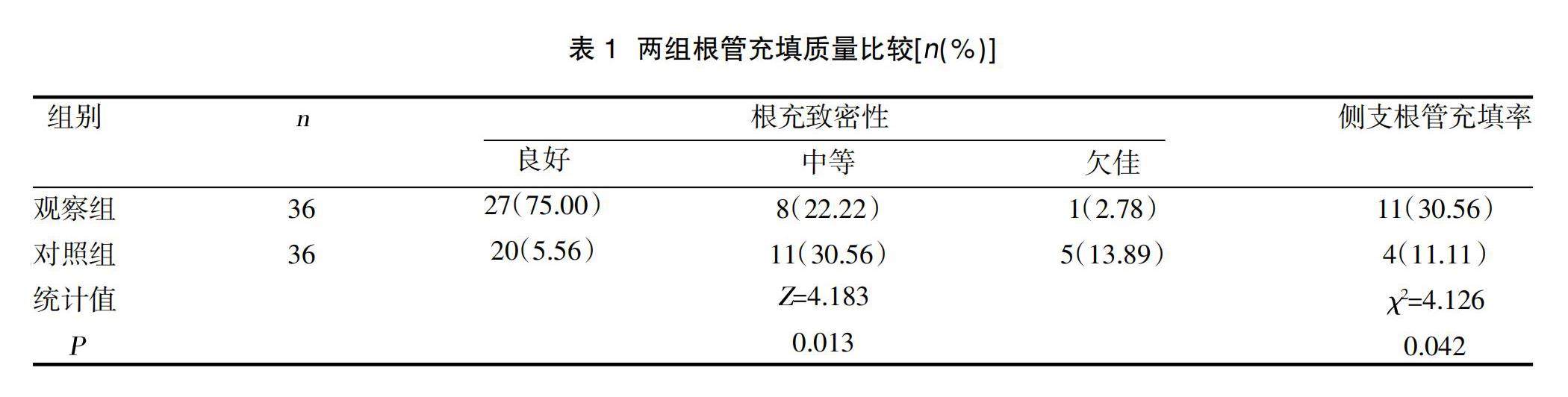 摘要:目的 研究不同根管冲洗方案对不可复性牙髓炎根管治疗术后患者疼痛及预后的影响。方法 选取2019年1月-2022年3月万载县人民医院收治的72例不可复性牙髓炎患者,按照随机数字表法分为对照组(36例)与观察组(36例)。两组均给予根管治疗,对照组应用注射根管冲洗方案,观察组则应用超声根管冲洗方案,比较两组根管充填质量(根充致密性、侧支根管充填率)、牙周指数[菌斑指数(PLI)、探诊出血指数(BI)、牙龈指数(GI)]、疼痛视觉模拟评分(VAS)、口腔健康程度量表(OHIP-14)评分、并发症发生率。(剩余8569字)