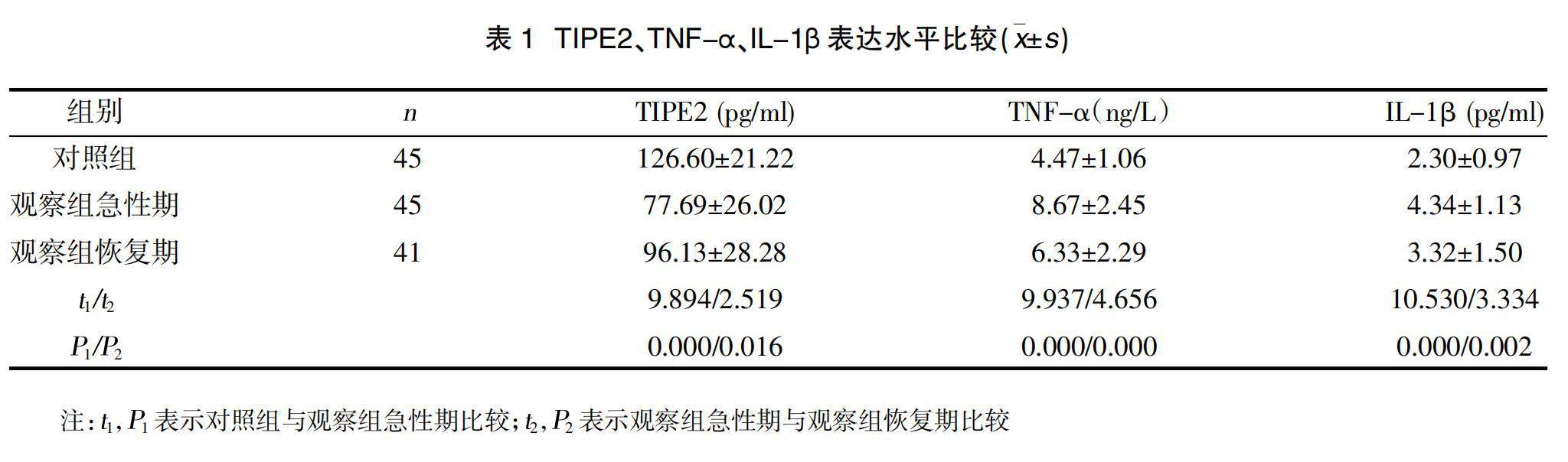 TIPE2、TNF-α、IL-1β在高血压脑出血患者的表达和意义