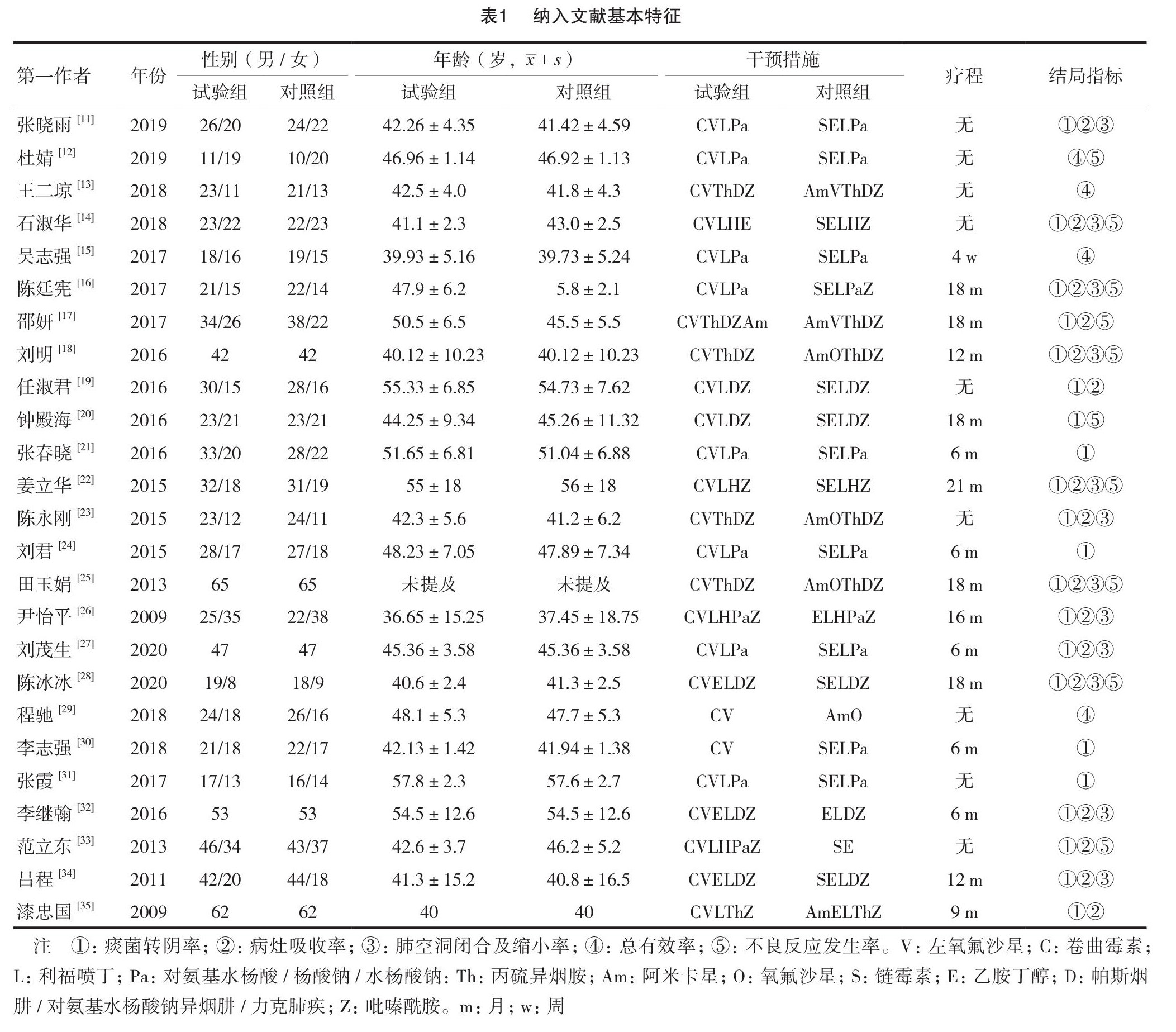 [摘要]目的运用系统评价比较左氧氟沙星联合卷曲霉素对耐多药肺结核患者的疗效及安全性,为其临床用药提供参考。方法计算机检索中国知网、万方、维普等数据库中左氧氟沙星联合卷曲霉素治疗耐多药肺结核的临床研究,检索时间范围自建库起至2021年6月。采用Revman 5.3软件对纳入研究进行统计分析。结果纳入25篇临床研究文献,总计2328例患者,结果显示试验组在痰菌转阴率、病灶吸收率、肺空洞闭合及缩小率、不良反应发生率及总有效率方面均优于对照组( P <0.05)。(剩余7642字)