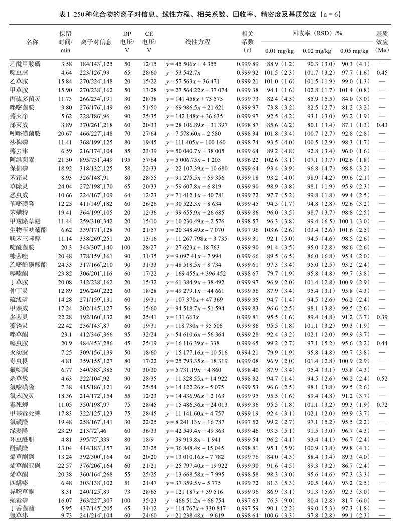 QuEChERS-超高效液相色谱-三重四极杆质谱法检测茶叶中250种农药残留