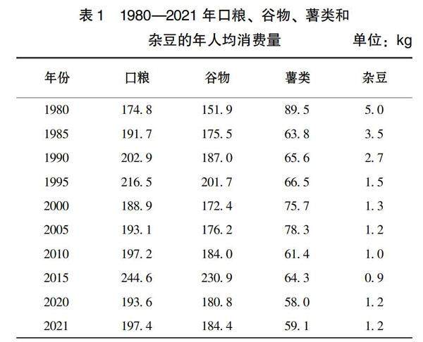 1980—2021年中国居民食物消费结构变化趋势及优化建议