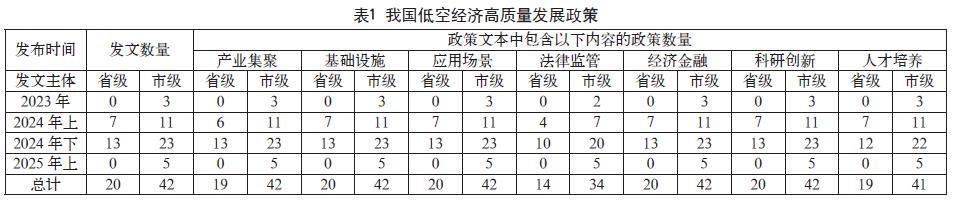 摘 要:当前,随着我国对低空经济发展的高度重视,低空经济已经进入快速培育阶段,产业环境持续优化,产业链基础良好,成为新质生产力发展的重要组成部分。本文对我国各省市发布的低空经济高质量发展政策进行汇总分析,揭示了低空经济政策驱动现实发展的七大方向,包括低空产业集聚、基础设施建设、应用场景拓展、法律监管完善、经济金融政策支持、科研创新赋能及人才培养机制建设。(剩余7327字)
