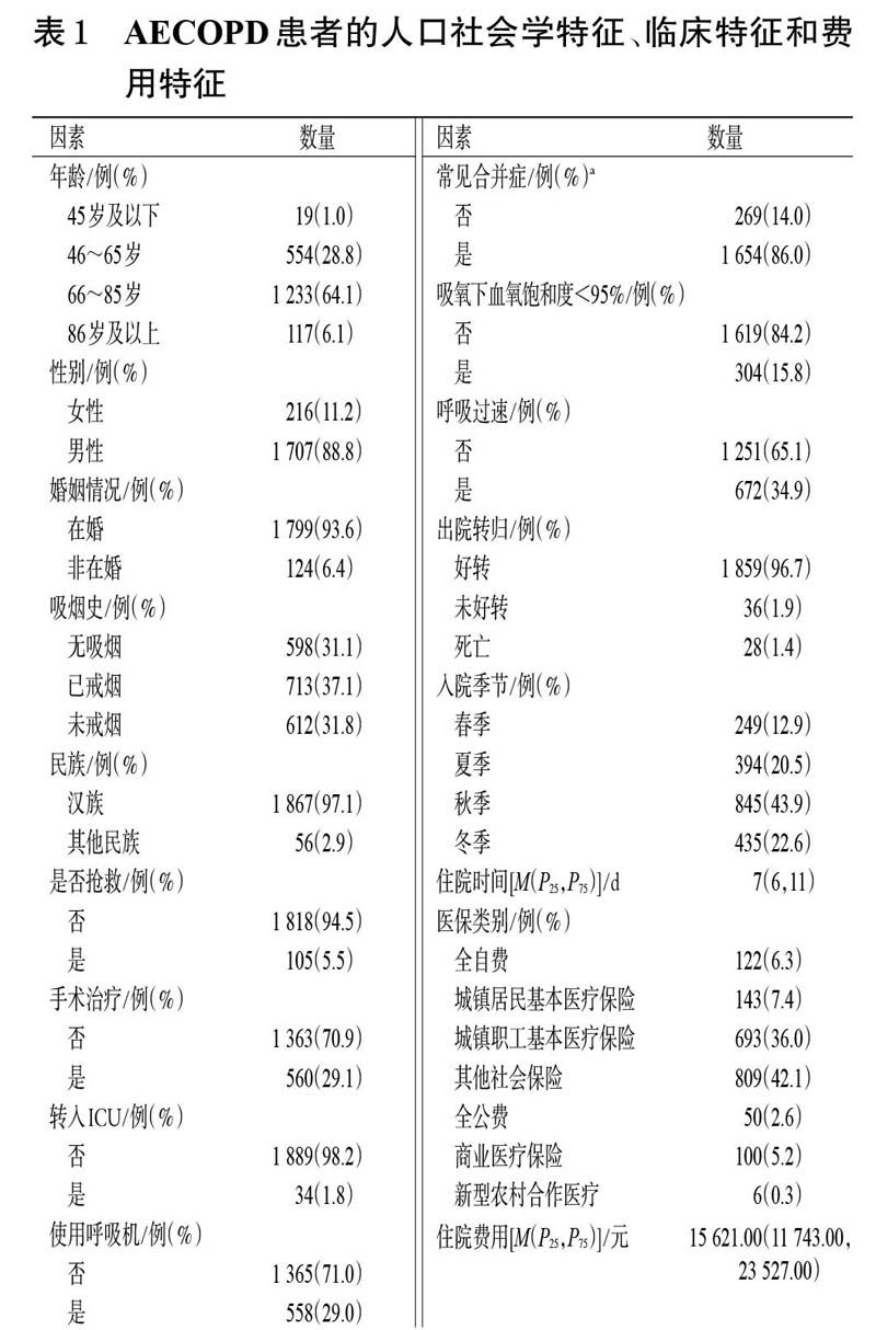 关键词慢性阻塞性肺疾病急性加重期;住院直接经济负担;影响因素;多元线性逐步回归分析