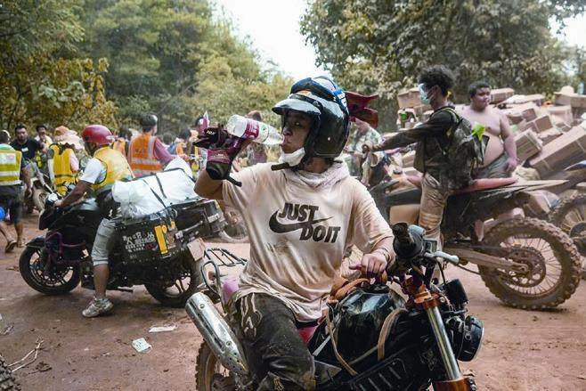 灭火最前线,一只由摩托车骑手自发组织的“摩托车军团”担负起运送物资的重任