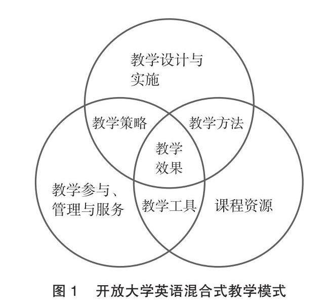 摘 要:“互联网+”教育下,混合式教学模式已然成为大学英语教育教学改革的热点。通过阐述混合式教学模式的内涵及构建的理论依据,构建了开放大学英语混合式教学模式并对该模式的具体实施进行了探索和思考。