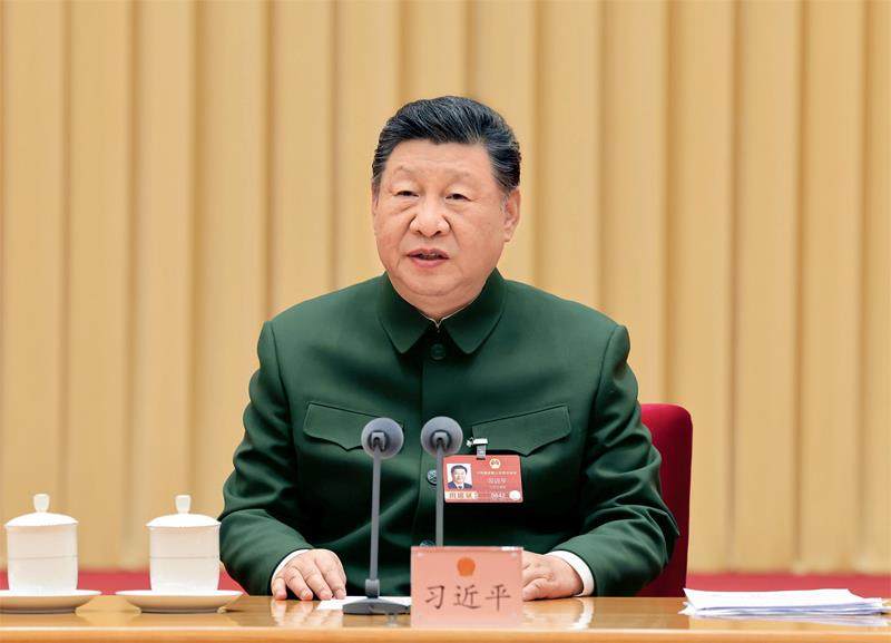 3月7日下午,中共中央总书记、国家主席、中央军委主席习近平出席十四届全国人大四次会议解放军和武警部队代表团全体会议并发表重要讲话。