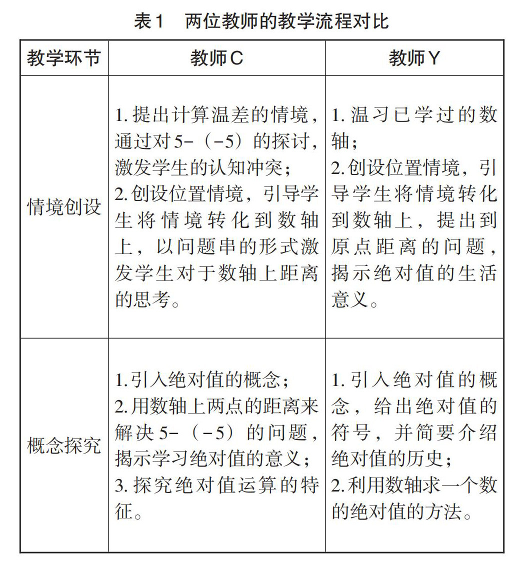 【关键词】绝对值;概念教学;同课异构;数学核心素养