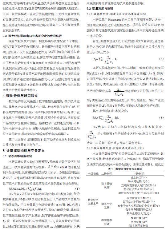 数字经济发展水平对中国制造业出口技术复杂度的影响研究