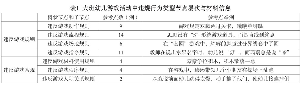 大班游戏活动中幼儿违规行为类型、特征及教育建议
