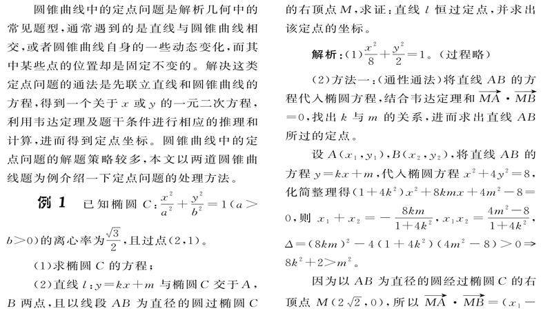 浅谈圆锥曲线中的定点问题