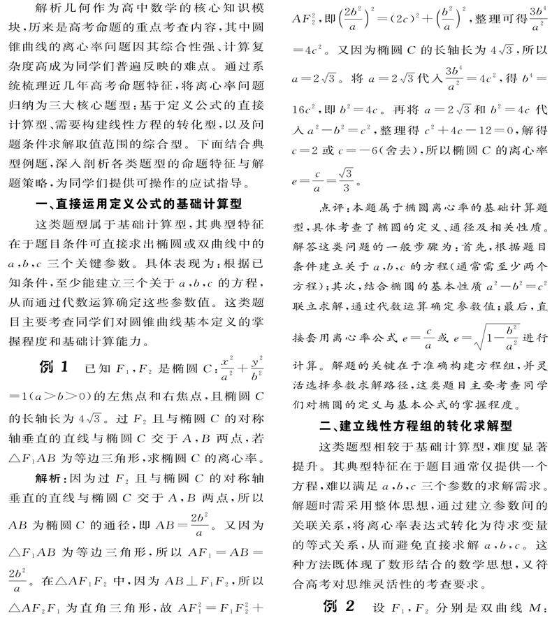 深度认知数学问题情境,破解圆锥曲线的离心率问题
