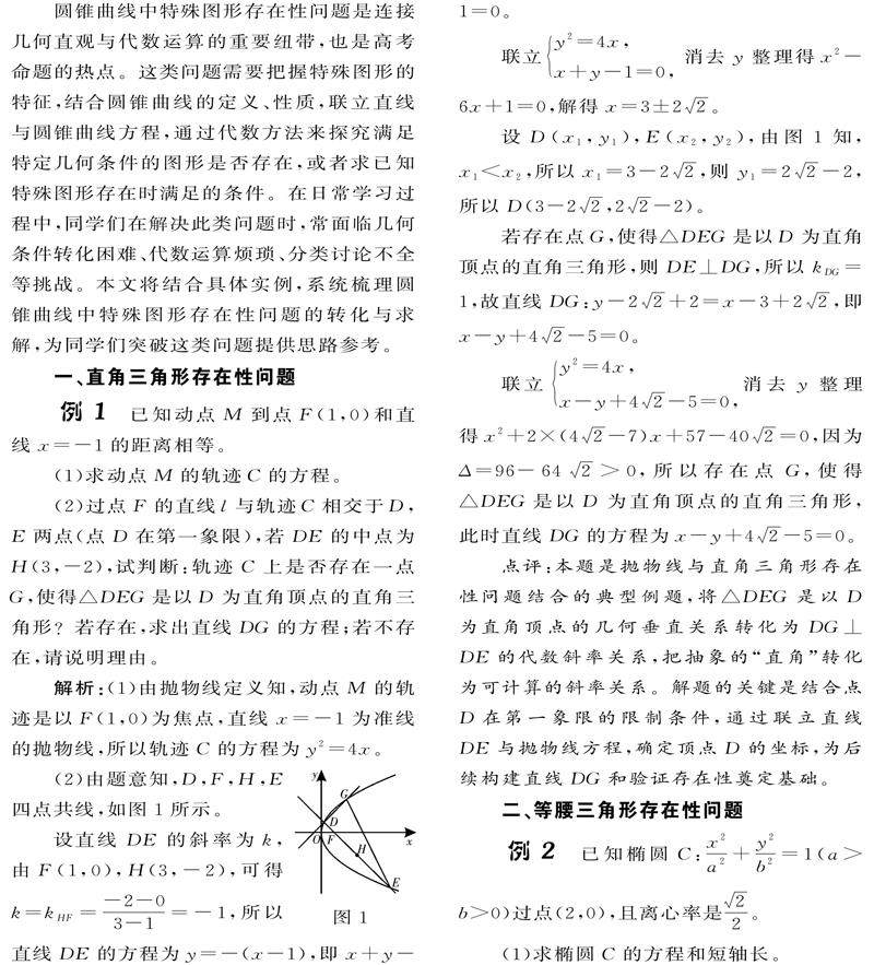 圆锥曲线中特殊图形存在性问题的转化与求解
