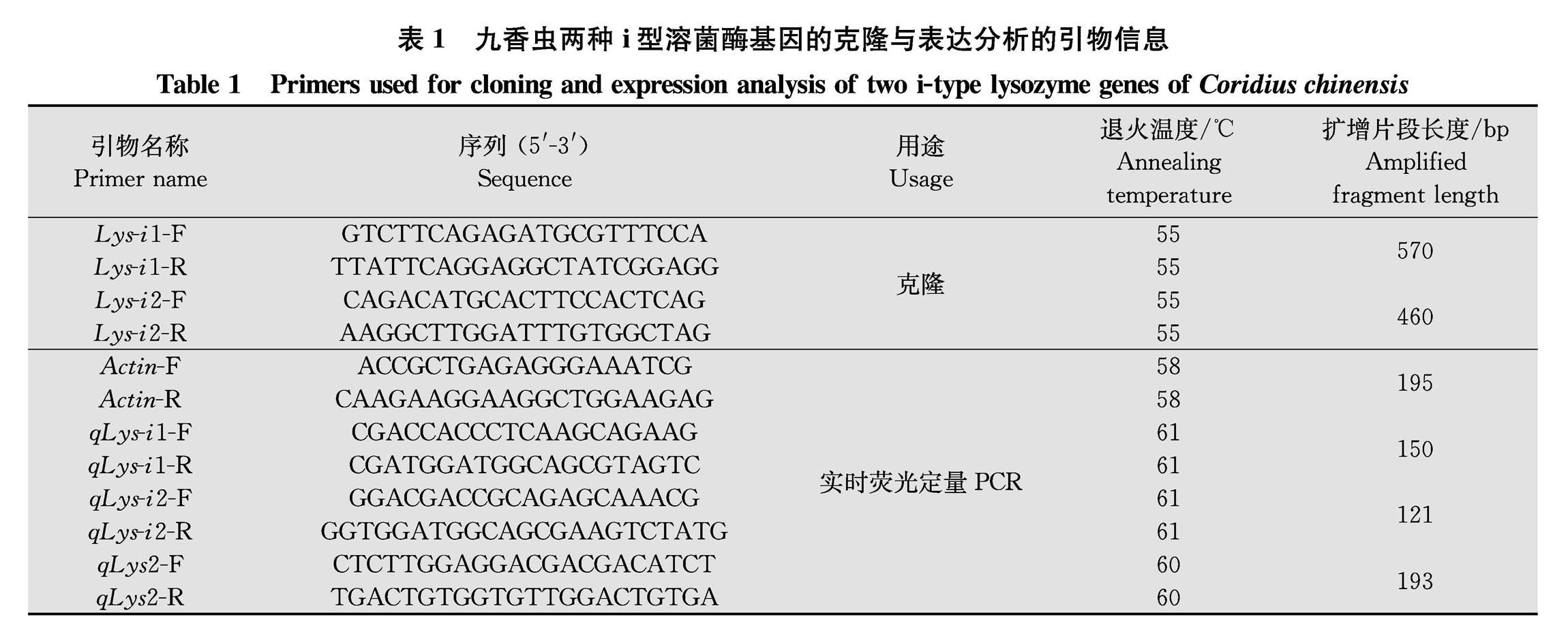 溶菌酶是一组进化上保守的酶,在昆虫中主要分为c型和i型两类。为明确i型溶菌酶在九香虫Coridius chinensis体内的表达模式与功能,我们对九香虫的两个i型溶菌酶基因CcLysi1和CcLysi2进行了克隆,这两个基因的编码区分别为504 bp和432 bp,分别编码167和143个氨基酸。(剩余21611字)