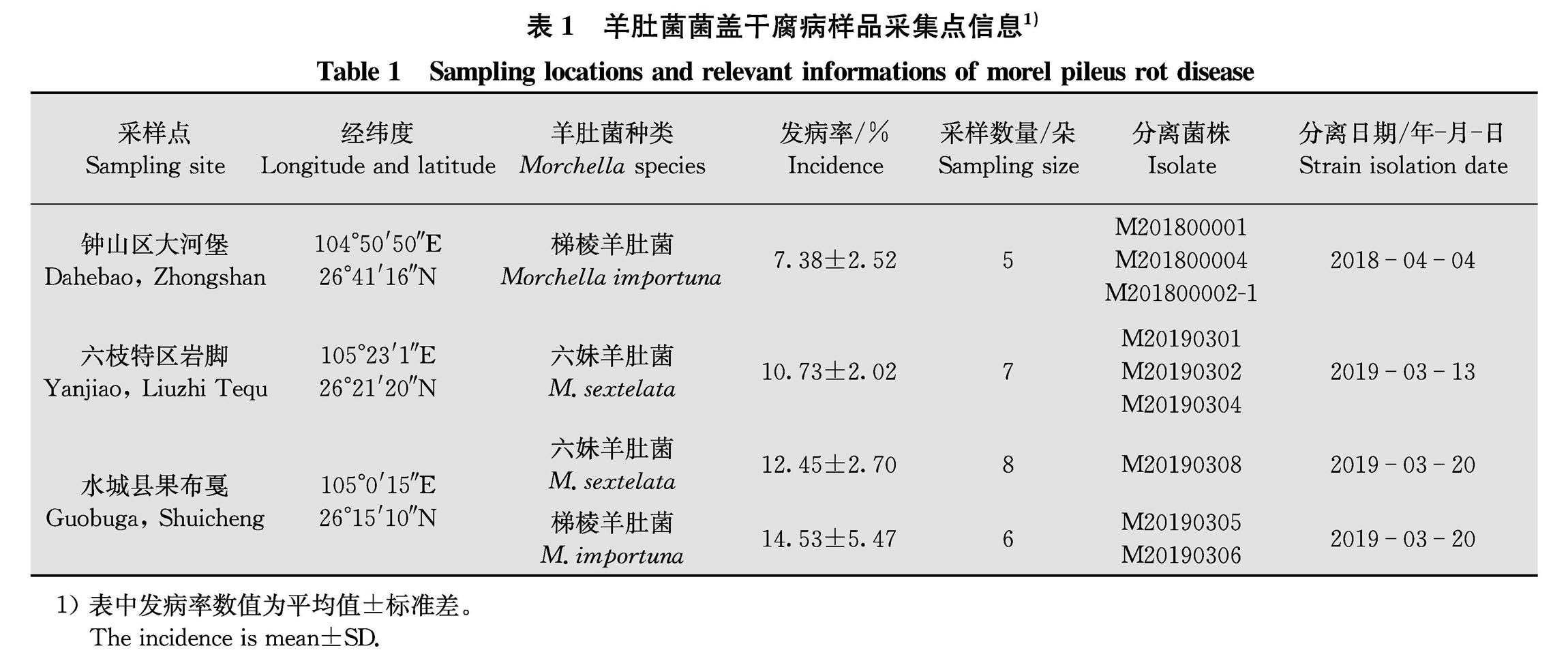 菌盖干腐病是羊肚菌Morchella spp.出菇后发生最严重的病害之一,常给羊肚菌生产造成较大损失。为明确引起贵州六盘水地区羊肚菌菌盖干腐病致病菌种类,采用单孢分离法从六盘水地区3个羊肚菌栽培点的菌盖干腐病样品上分离到9个菌株。基于形态学及ITS和LSU基因序列分析将9个菌株鉴定为长孢卵单隔孢霉Diplospora longispora。(剩余10386字)