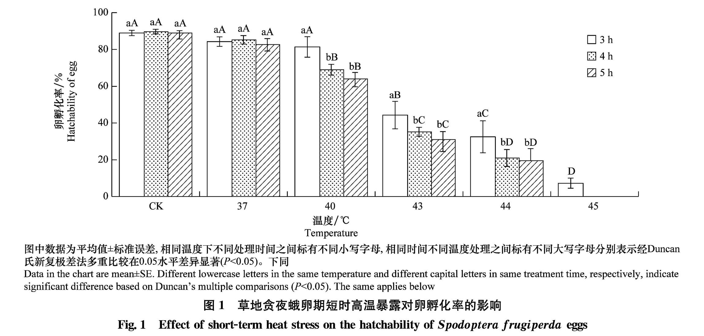 短时高温暴露对草地贪夜蛾存活及生殖的影响