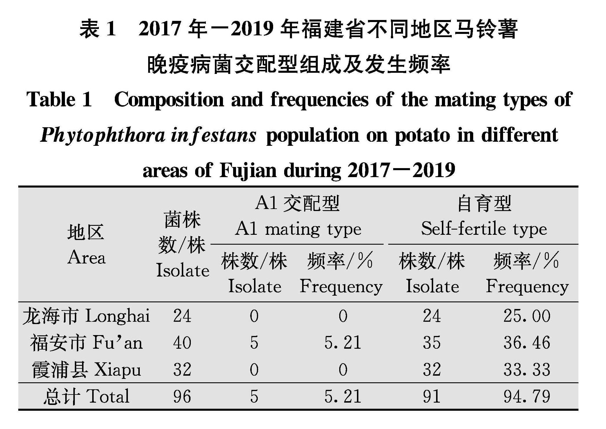 为明确福建省部分马铃薯产区晚疫病菌群体结构,2017年-2019年在龙海市、福安市、霞浦县共分离获得96株马铃薯晚疫病菌。采用对峙培养法、鉴别寄主法和PCRRFLP法对这些菌株的交配型、生理小种及线粒体DNA (mtDNA)单倍型进行分析。交配型测定结果显示,除了福建省福安市有5株(5.21%)为A1交配型外,其余91株(94.79%)均为自育型,未发现A2交配型及A1A2型菌株。(剩余11955字)