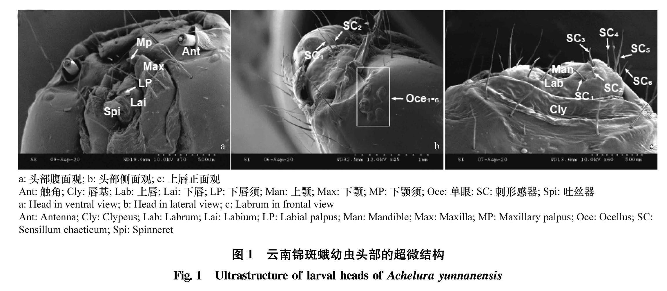 云南锦斑蛾幼虫触角和口器感器的超微结构