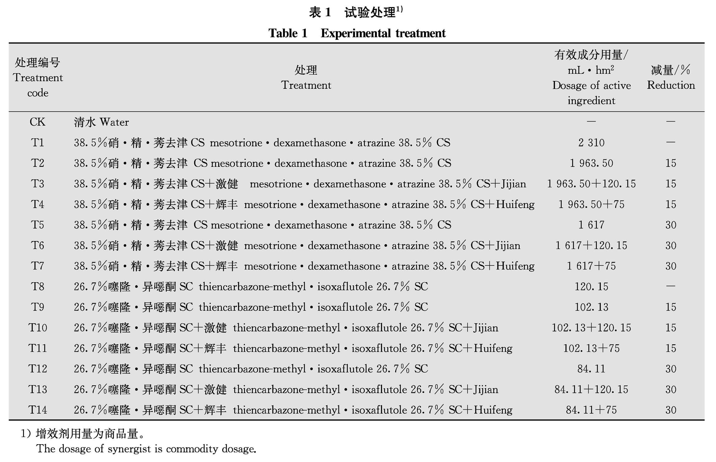 为了明确2种增效剂对除草剂的减量效应,为除草剂科学减施及增效剂安全使用提供数据基础,2019年在西北荒漠绿洲生态区春玉米田,以38.5%硝·精·莠去津CS和26.7%噻隆·异噁酮 SC作为茎叶处理剂,测定了激健和辉丰2种增效剂在不同施药剂量下的除草效果。结果表明:在38.5%硝·精·莠去津CS 2 310 mL/hm2和26.7%噻隆·异噁酮SC 120.15 mL/hm2的推荐剂量下,或在它们减量15%和30%单施的情况下,38.5%硝·精·莠去津CS对玉米田杂草的防效均优于26.7%噻隆·异噁酮 SC;2种药剂减量15%和30%后,在同等剂量下添加增效剂的处理优于药剂单用,激健的效果优于辉丰;药剂减量15%的处理效果优于减量30%的处理。(剩余9385字)