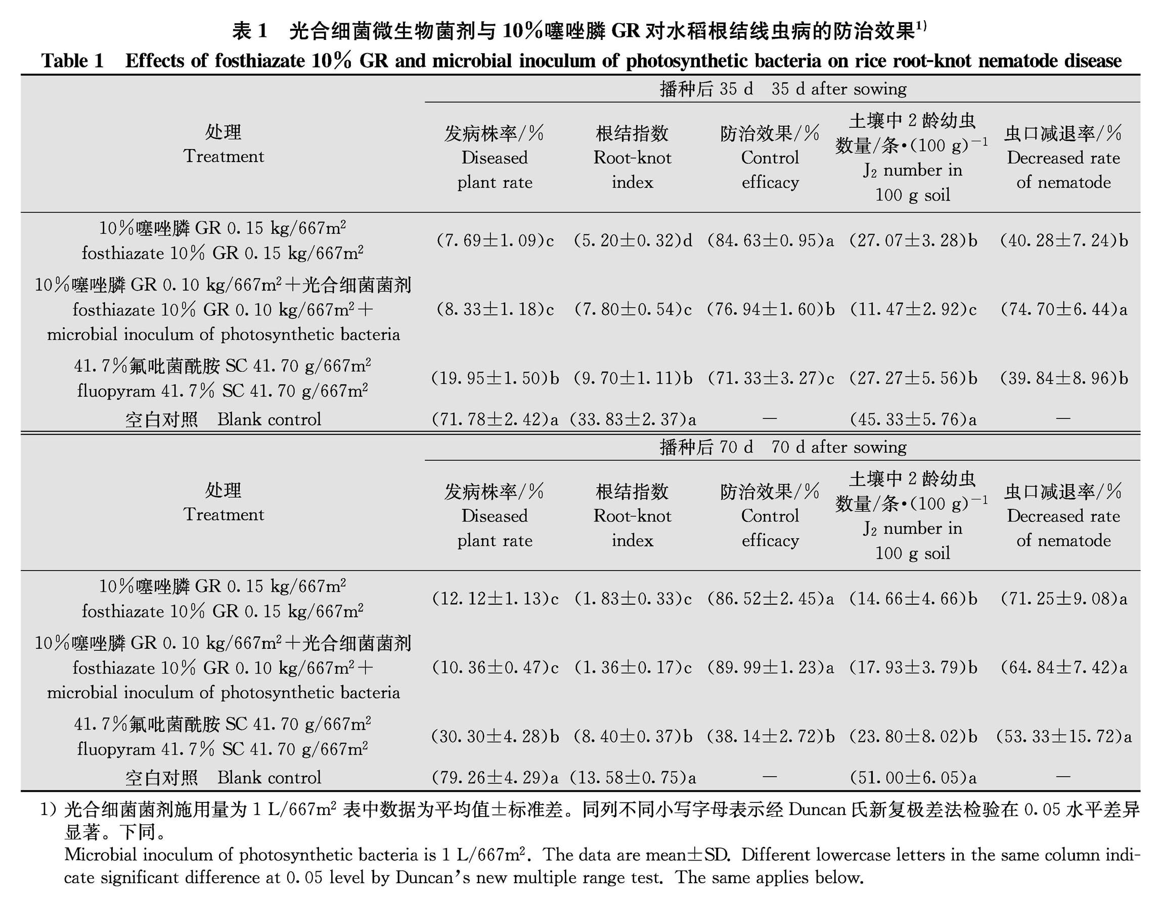 光合细菌菌剂与噻唑膦协同使用对水稻根结线虫病防治研究