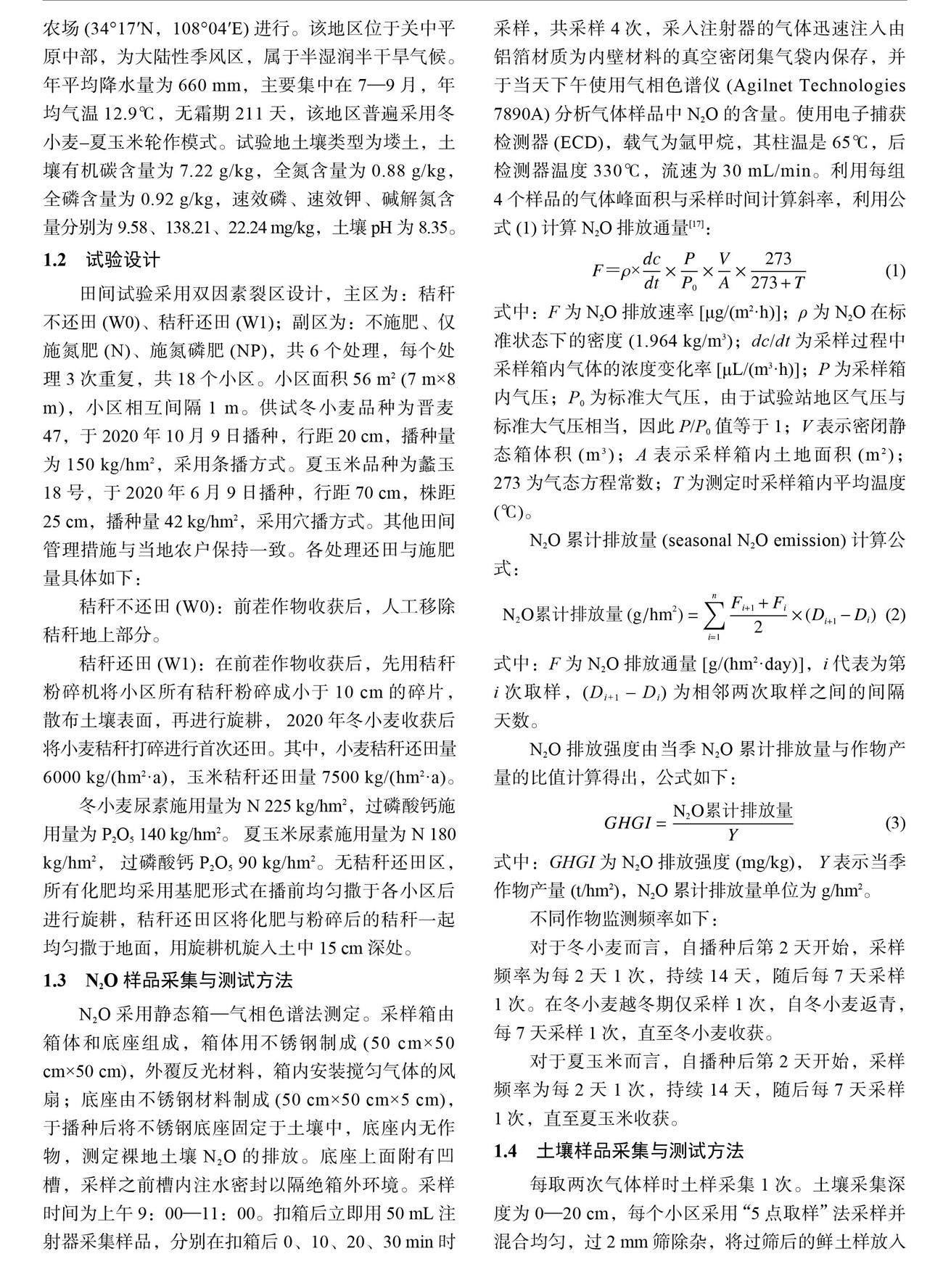 秸秆还田对关中地区麦玉轮作田N2O 排放的短期效应