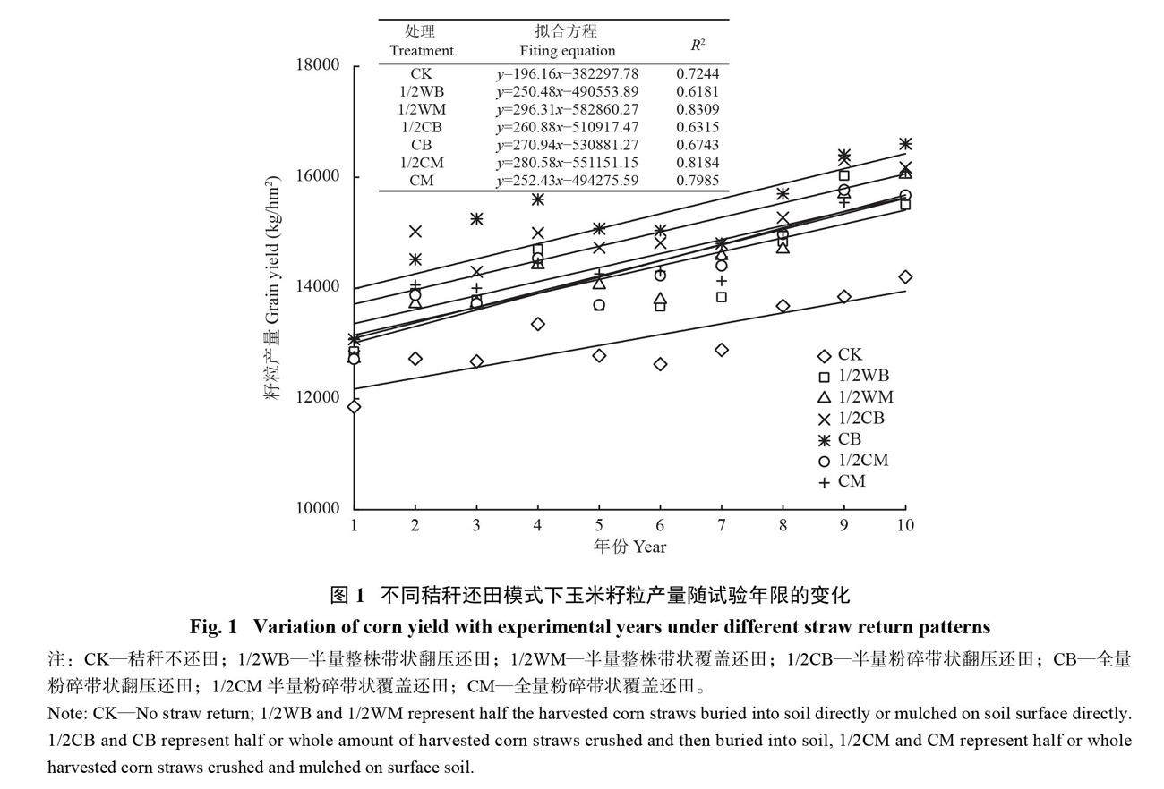 河西绿洲灌区玉米产量对长期秸秆带状覆膜还田方式的响应