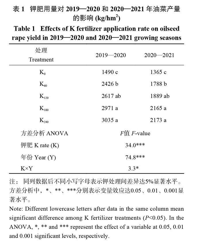 钾肥用量对油菜产量及品质的影响