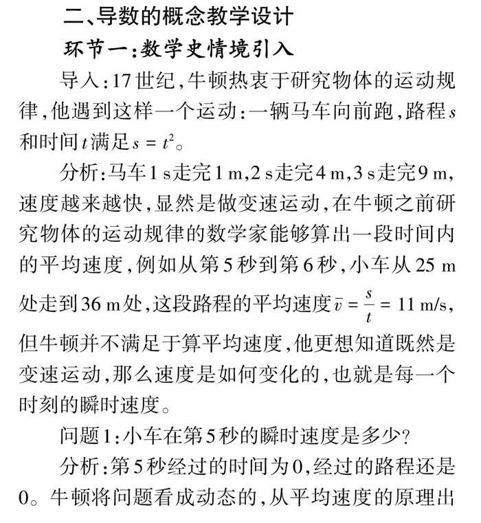 [摘 要]HPM指数学史与数学教育研究。HPM已成为数学教育的重要研究方法之一。将数学史融于数学教学,可以从不同方面对高中数学的教学起到借鉴作用。文章主要通过文献研究法和案例分析法,探究数学史教学与微积分的发展史,分析高中导数教学存在的困难,将HPM融入导数教学。
