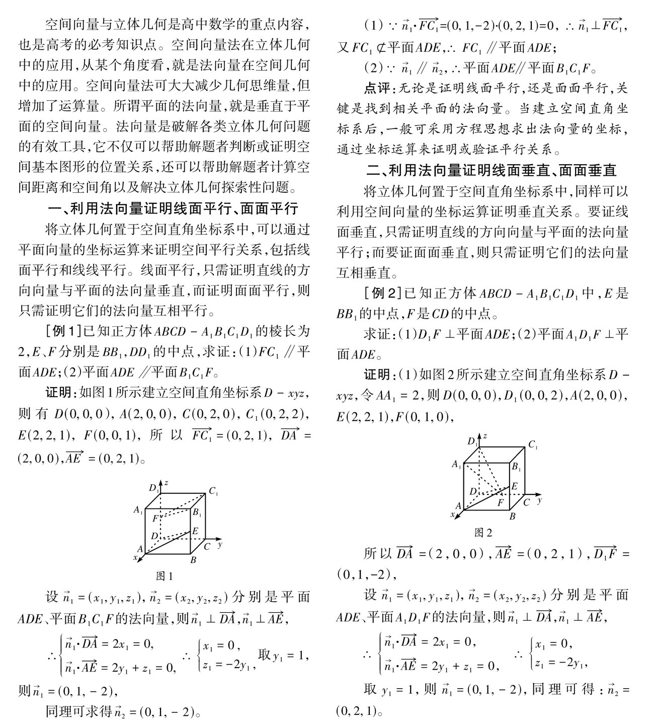 例谈法向量在立体几何中的应用