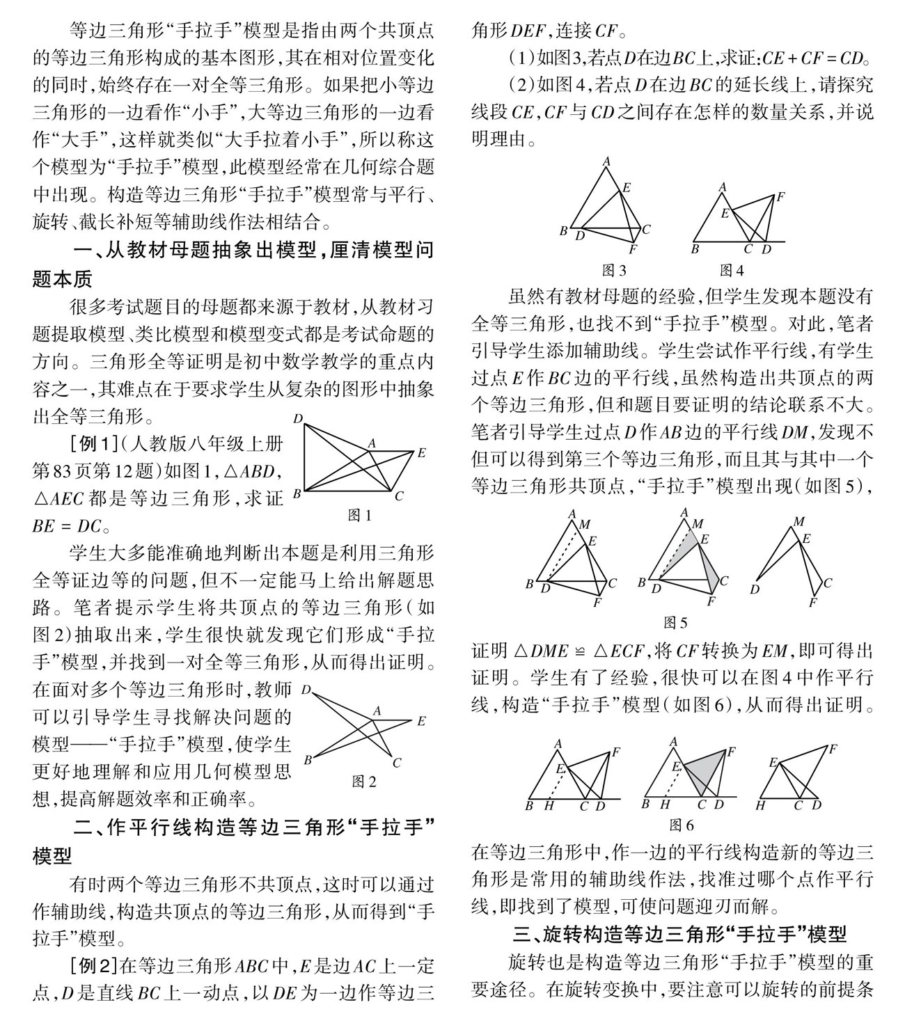 [关键词]等边三角形;“手拉手”模型;构造