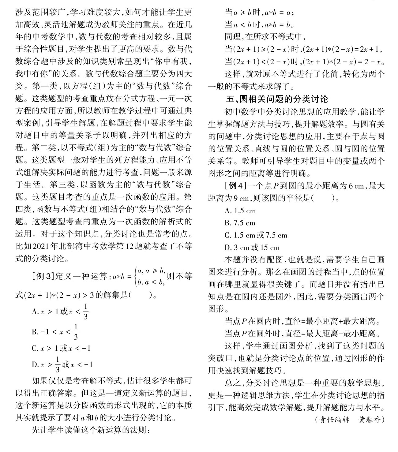 [摘 要]初中数学是一门难度较大的学科,对学生的能力要求相对较高。在初中数学教学中,为了满足学生的学习需求,让学生能更好地进行学习,加强对知识的理解与记忆,教师需要采取高效的教学方法。在初中数学解题中应用分类讨论思想,不仅能让学生掌握解题的规律及正确的解题方法,还能提升学生的解题效率。在初中数学教学中,教师可结合典型问题引导学生合理应用分类讨论思想,以助力学生有效解题,提升学生的解题能力。(剩余4611字)