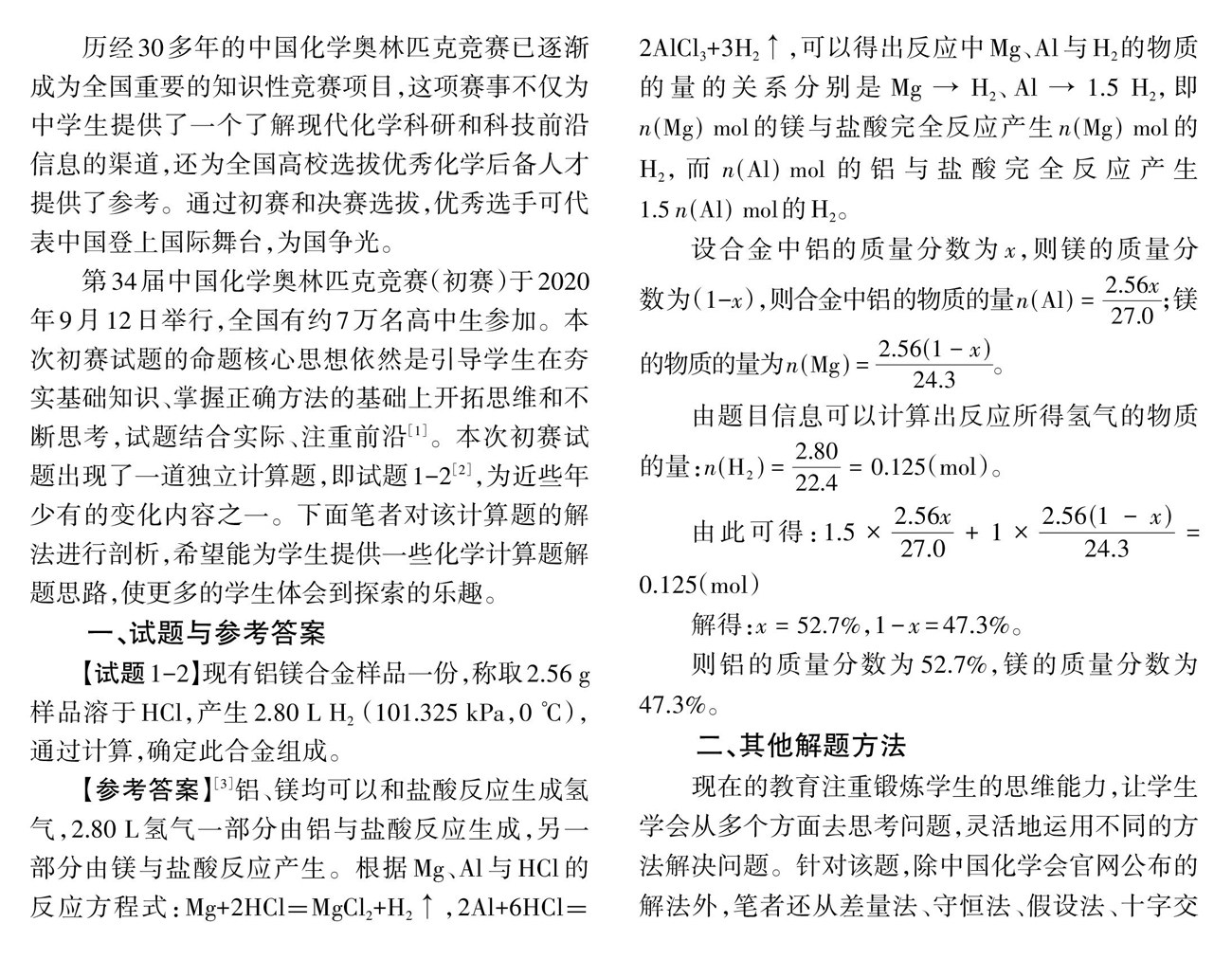 第34届中国化学奥林匹克竞赛试题解法赏析