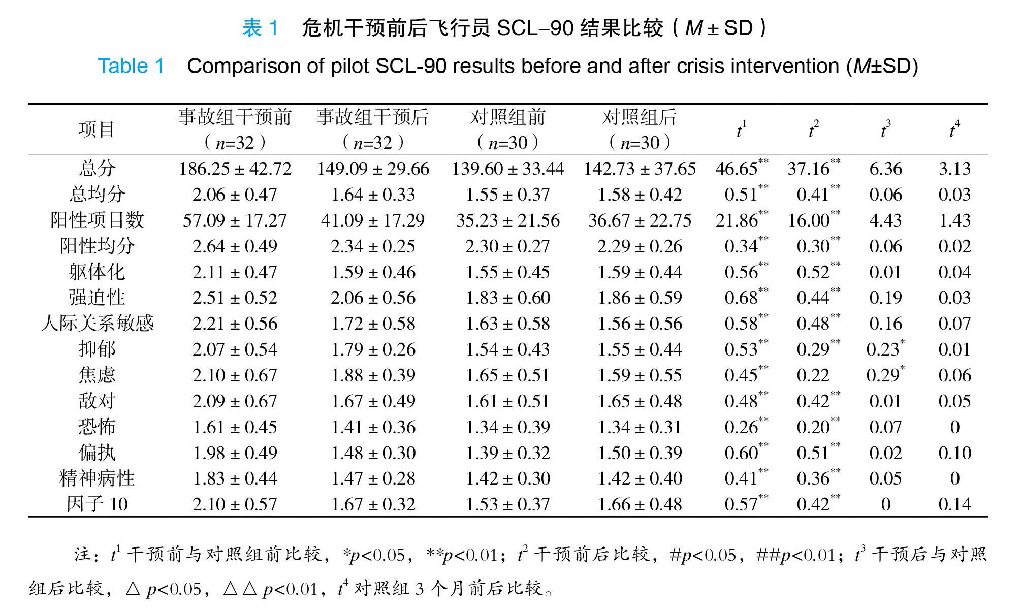 紧急事件应激晤谈对飞行员心理健康状况的影响