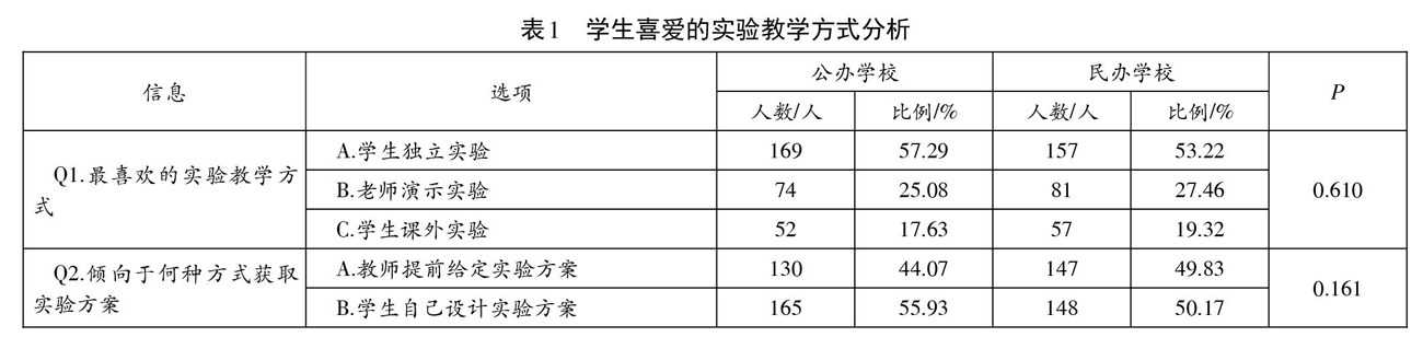 贵阳市公办和民办初中学生生物实验学习状况调查研究