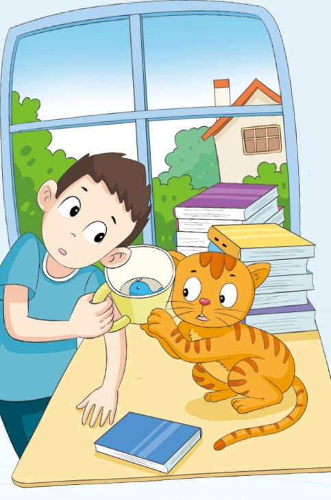 “臭脚猫!不许你在我水杯里洗脚!”我赶紧把水杯放得很高很高。