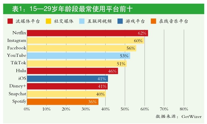 观察美国15—29岁年龄段常用平台排名,不难发现,这一代年轻人娱乐生活的跨平台已经成为常态,但在这些常用平台中,没有一个是传统媒体。显然,这代消费者中年轻群体已经很少关注传统媒体了。