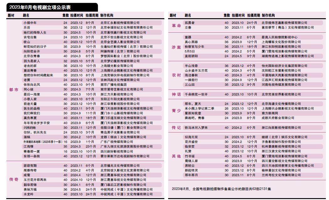 ——2023年8月电视剧立项表分析