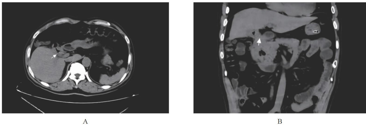 ABSTRACT:Gallbladder-duodenal fistula,a severe complication of cholecystitis caused by galstones,is clinicallyrare.Itsclinical presentation lacks specificity,and conventional preoperative imaging often fails to establishadefinitive diagnosis.This report describes a case where a galbladder-duodenal fistula was diagnosed using oral microbubble ultrasound contrast agent for gastric-duodenal contrast-enhanced ultrasound,providing a novel approach for diagnosing this condition.