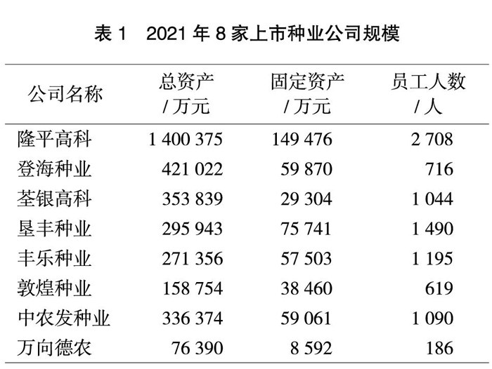 关键词:种业;上市公司;现代种业