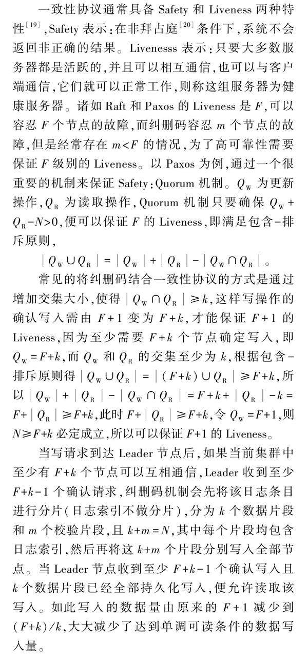 摘要: 一致性协议中的持久化模型是实现跨客户端单调读的一个主要前提条件,传统的同步持久化和异步持久化无法同时兼顾高性能和一致性,CAD一致性协议通过修改异步持久化给出了一个高效的解决方案,但是CAD在应对热读时需要频繁地等待数据持久化,从而导致读取效率低甚至系统阻塞。提出的F-CAD(fast-CAD)通过结合纠删码的方式将CAD中的全条目复制改为片段复制,针对F-CAD结合纠删码后单个节点负载过高的问题给出一个负载均衡方案,在保证和CAD相同Liveness的前提下,通过减少单个节点单次写入的数据量来加快持久化速度,可以减少90%单个节点数据的写入量,减少80%全部节点的数据写入量,降低约38%的写入延迟,提高约120%的写吞吐量。(剩余14942字)