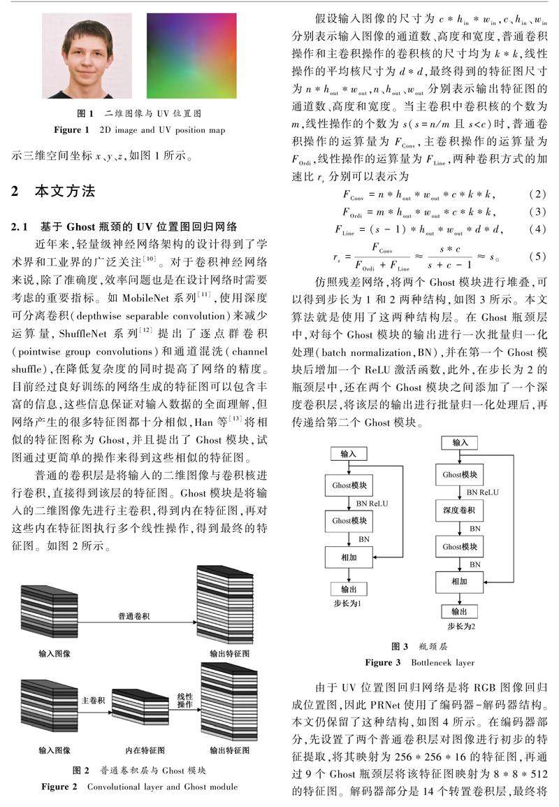 摘要: 为了解决三维人脸表情克隆时的准确性与实时性问题,提出了一种基于UV位置图的视频三维人脸表情克隆方法。首先逐帧读取视频进行人脸检测,然后裁剪出人脸区域,输入到位置图回归网络中得到UV位置图,最后根据UV位置图获得人脸关键点三维信息,驱动三维人脸模型产生变形,完成人脸表情克隆。为了提高克隆效果,构建了基于Ghost瓶颈的轻量级网络,并根据人脸肌肉运动规律与表情变化特征设计了一种新的人脸分区方式及权重,结合Wing Loss损失函数,对卷积神经网络模型进行训练。(剩余13716字)