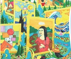 图1名画旅行创意画(图/)著名的AI导演“思考先生”在五维空间里创造了一个神奇的世界,叫作“名画旅行”。在这里,我们可以走进一幅幅世界名画,亲身体验画中的故事、风景,感受画中人物的喜怒哀乐。快来看看我设计的旅行路线吧! 首先,我和妈妈踏入《...
