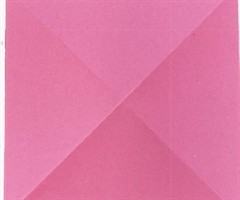 在中国的传统文化中,蝙蝠形象有“送福”的美好寓(yu)意。元旦即将来临让我们拿出手工纸,做一只可爱的小蝙蝠吧。只要动动你的食指和拇指,它就会呼呼地扇动翅膀,为你扇来福气哟。 2.把手工纸沿其中一条对角线对折,再如图所示,把顶角往下翻折。1....