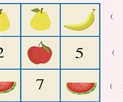 猜一猜,图中的水果分别代表什么数?在括号中填入合适的数。 (1) ( 12 ) (...