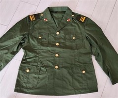 1988年首批配发的87式军服样式和分类(续) 87式男士兵常服分为陆、空军夏常服、冬常服和海军水兵服。其中,陆、空军男士兵夏常服样式一致,为小翻领上衣,中襟缀4枚古铜色光面胶木扣。上衣有上下各2个带胶木扣的贴袋,裤子为西式裤,有2个斜挖袋...