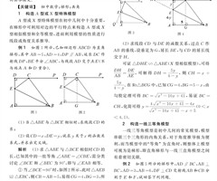 【摘要】梯形是特殊的几何图形,具有对边平行的特点,在综合探究时基于该特点可以构建特殊模型,利用模型特性来解决复杂问题,下面结合实例具体探究. 【关键词】初中数学;梯形;共角...