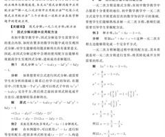 【摘要】配方法是把一个算式或者一个算式中的某一个部分以恒等变形的方式变成完全平方或者几个完全平方式的和.在初中数学解题过程中,适当运用配方法解答相应的问题,有利于提升解题的正确率与解题速度.本文从“因式分解问题中应用配方法”“解一元二次方程...
