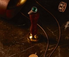 1. Perlée clovers戒指黄K金,钻石 86,500元2. Perlée couleurs戒指黄K金, 孔雀石 18,400元3. Zodiaque Piscium(双鱼座)徽章及项链 黄K金徽章 17,60...
