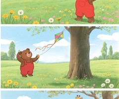 【写话要求】 请同学们仔细观察图画,想一想图中发生了一件什么事,然后把它写下来。 【提示与指导】 同学们要按照顺序观察三幅图。开头可以简单地写一下时间、天气、环境等,然后按照“放风筝一挂风筝一取风筝”这三个步骤写清楚事情的经过。“放风筝”要...